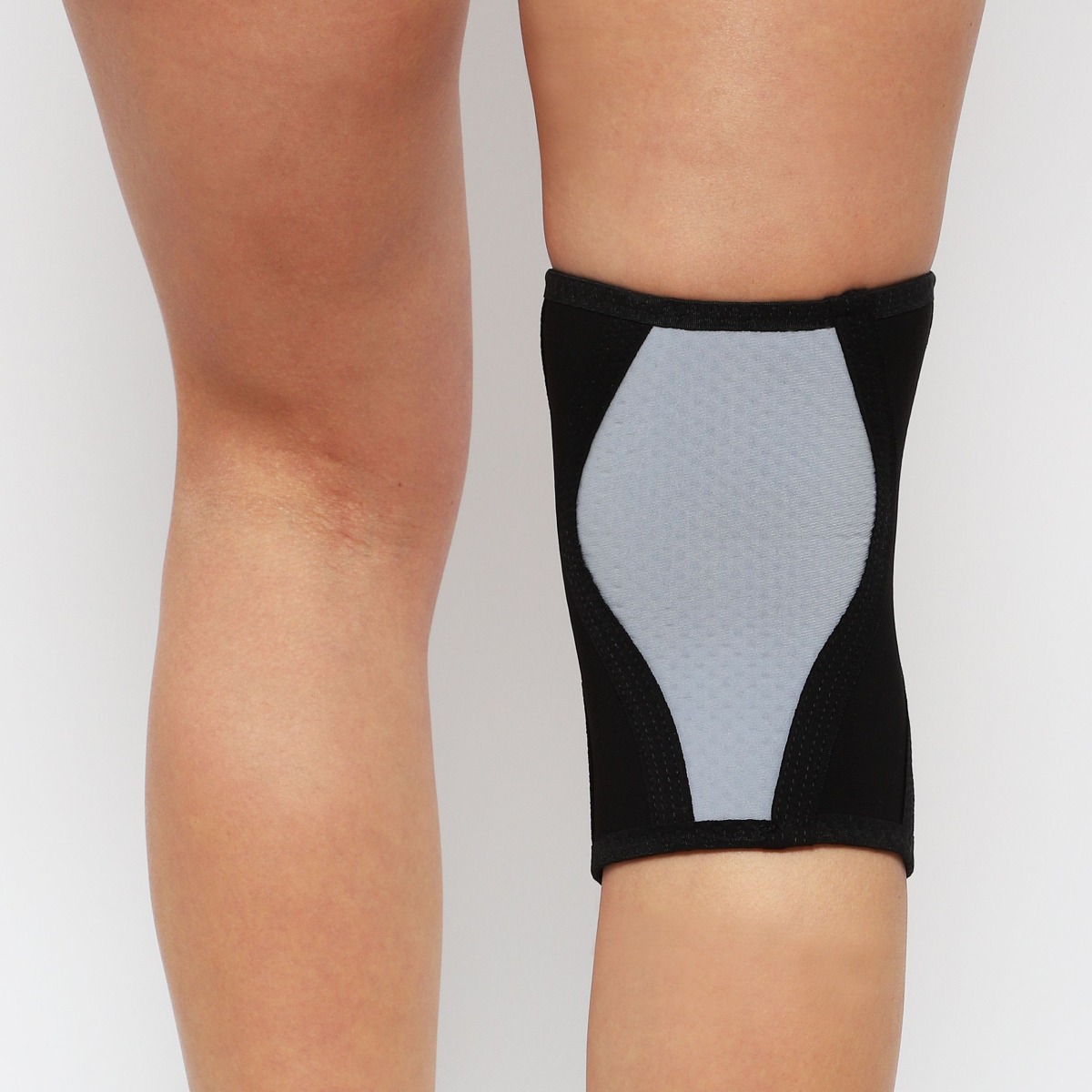 Наколенник выполнен из перфорированного неопрена, который оказывает теплосберегающий эффект