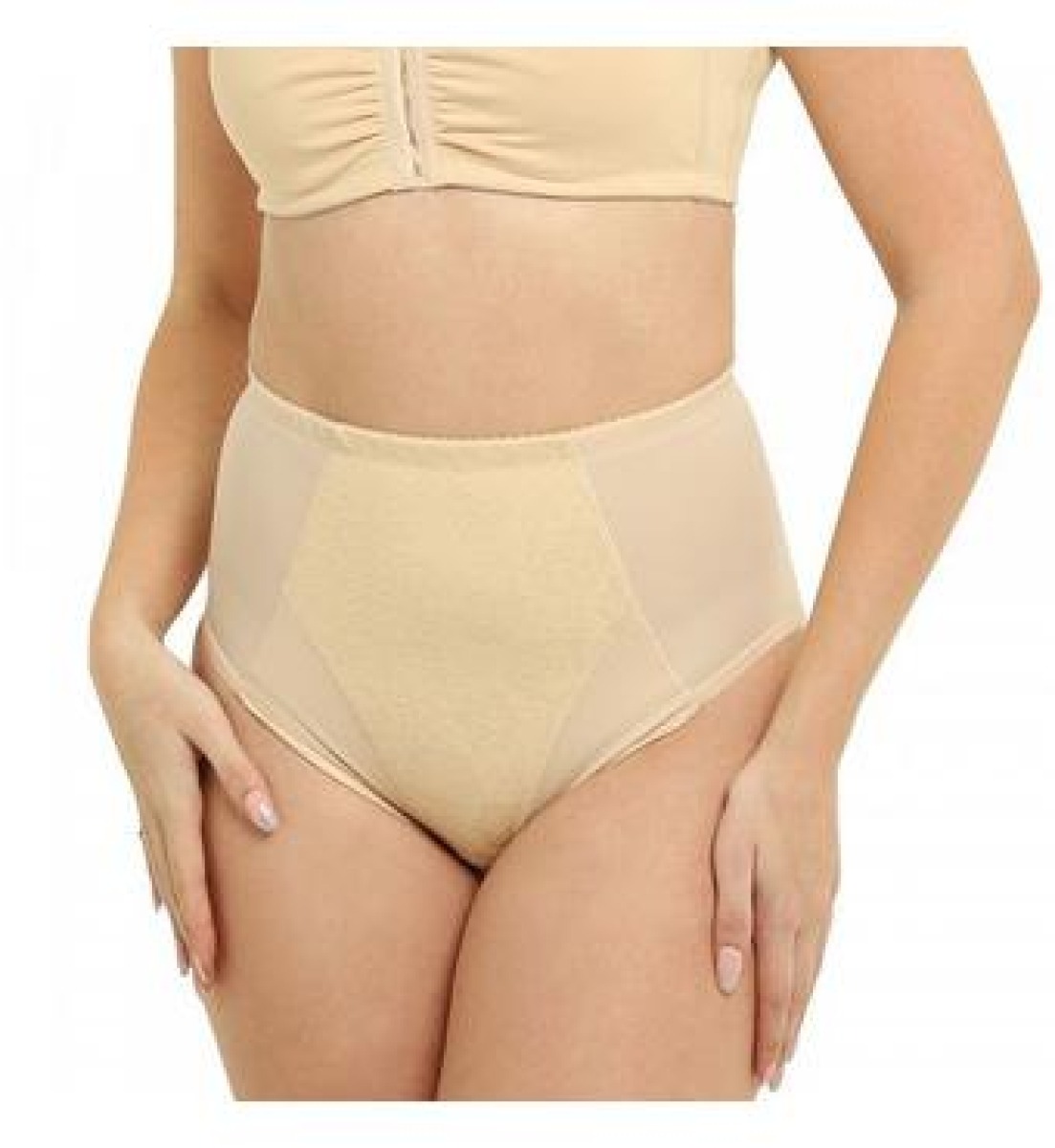Выполнен в виде завышенных трусов из эластичного функционального полотна