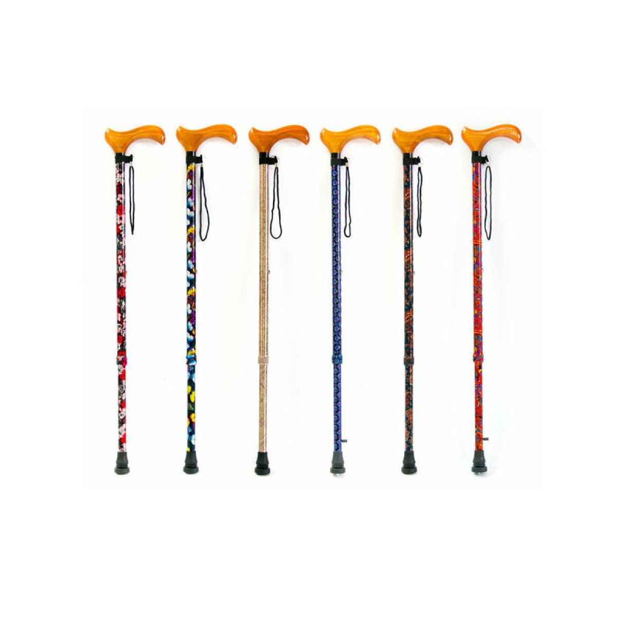 Мега-Оптим ТР1(01) с УПС (цветные стойки) Трость опорная, регулируемая по высоте, с устройством противоскольжения, телескопическая с деревянной ручкой, код ФСС 06-01-02