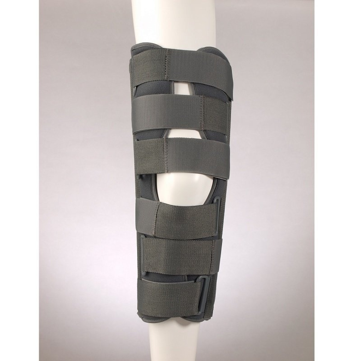 Фиксатор (тутор) для нижней конечности выполнен из комбинированных материалов. Наколенник с ребрами жесткости обеспечивает фиксацию и стабилизацию бедра коленного сустава и надколенника, стабилизацию коленного сустава в вертикальной, фронтальной и сагиттальной плоскостях, голени в функционально правильном положении нижней конечности. Также возможно использование как транспортной шины и послеоперационного тутора. Может быть использован в качестве замены гипсовой повязки.
