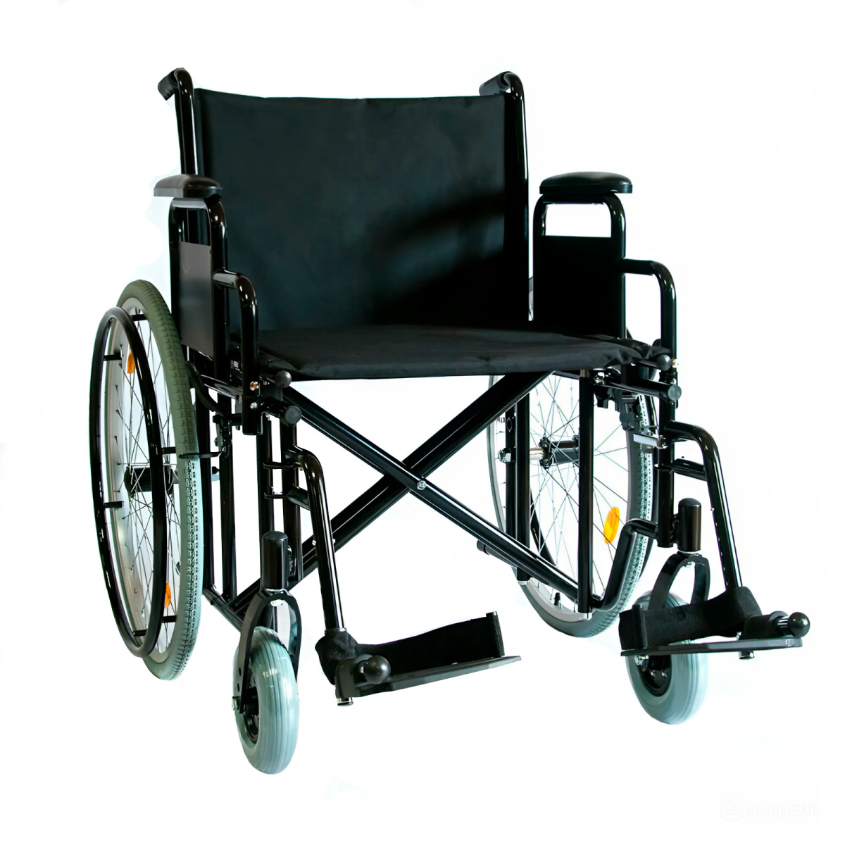 Инвалидная кресло-коляска предназначена для людей с большой массой тела. Данная модель представлена в трех вариациях — с эффективной шириной сиденья 54, 59 и 64 см, что дает возможность подобрать необходимую модификацию в соответствии с нуждами любого пользователя и клиента. Сиденье и спинка кресла-коляски сделаны из прочной ткани, способной выдерживать большие нагрузки. Еще одной важной особенностью конструкции является увеличенный диаметр несущей оси задних колес, которая сделана из специального высокопрочного сплава. Колеса данной коляски оснащены пневматическими шинами из износоустойчивой резины.