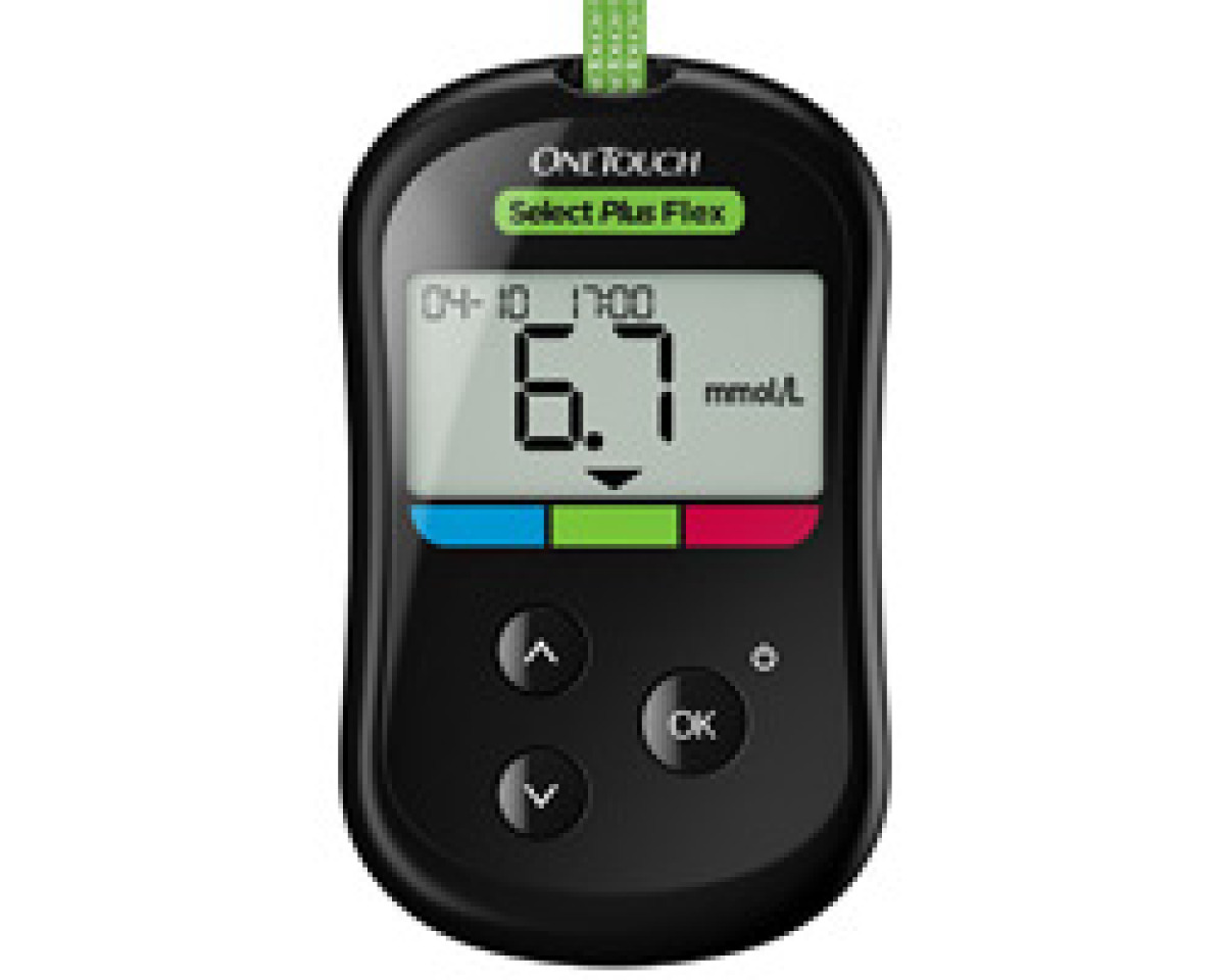 Глюкометр OneTouch Select Plus Flex® подойдет всем людям с сахарным диабетом, кому нужен простой прибор. Этот глюкометр не только прост в использовании, но и поможет человеку с диабетом легко понять свой результат благодаря цветовым подсказкам* – низкий, высокий или то, что надо.