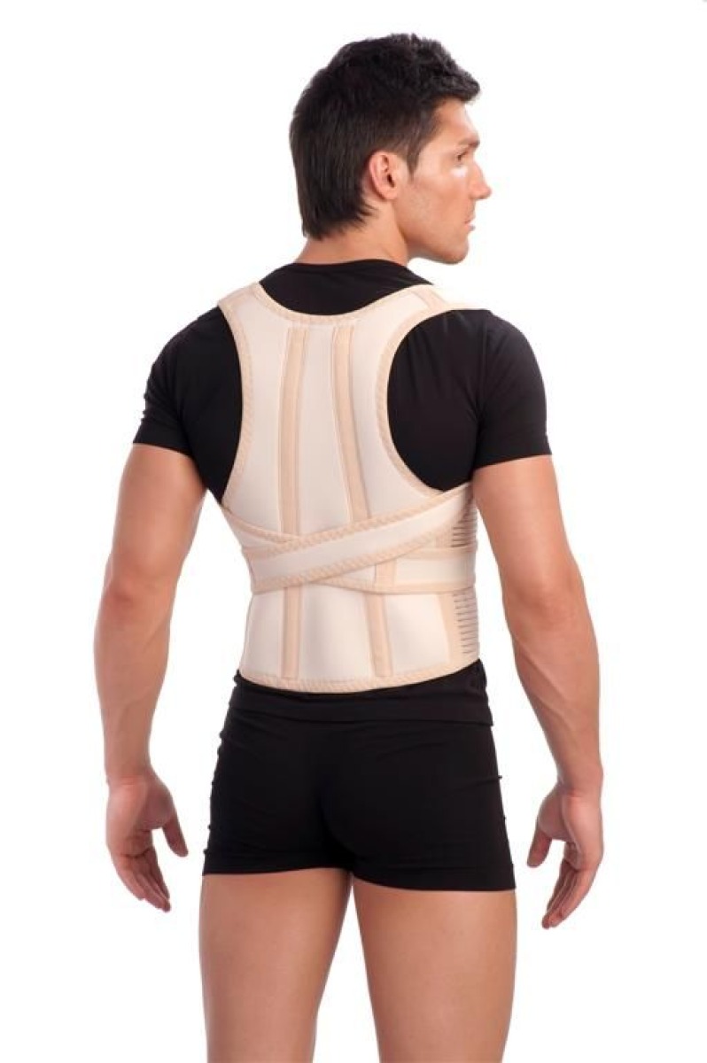 Снабжен двумя съемными моделируемыми металлическими ребрами жесткости и системой эластичных лямок для восстановления и сохранения правильной осанки.