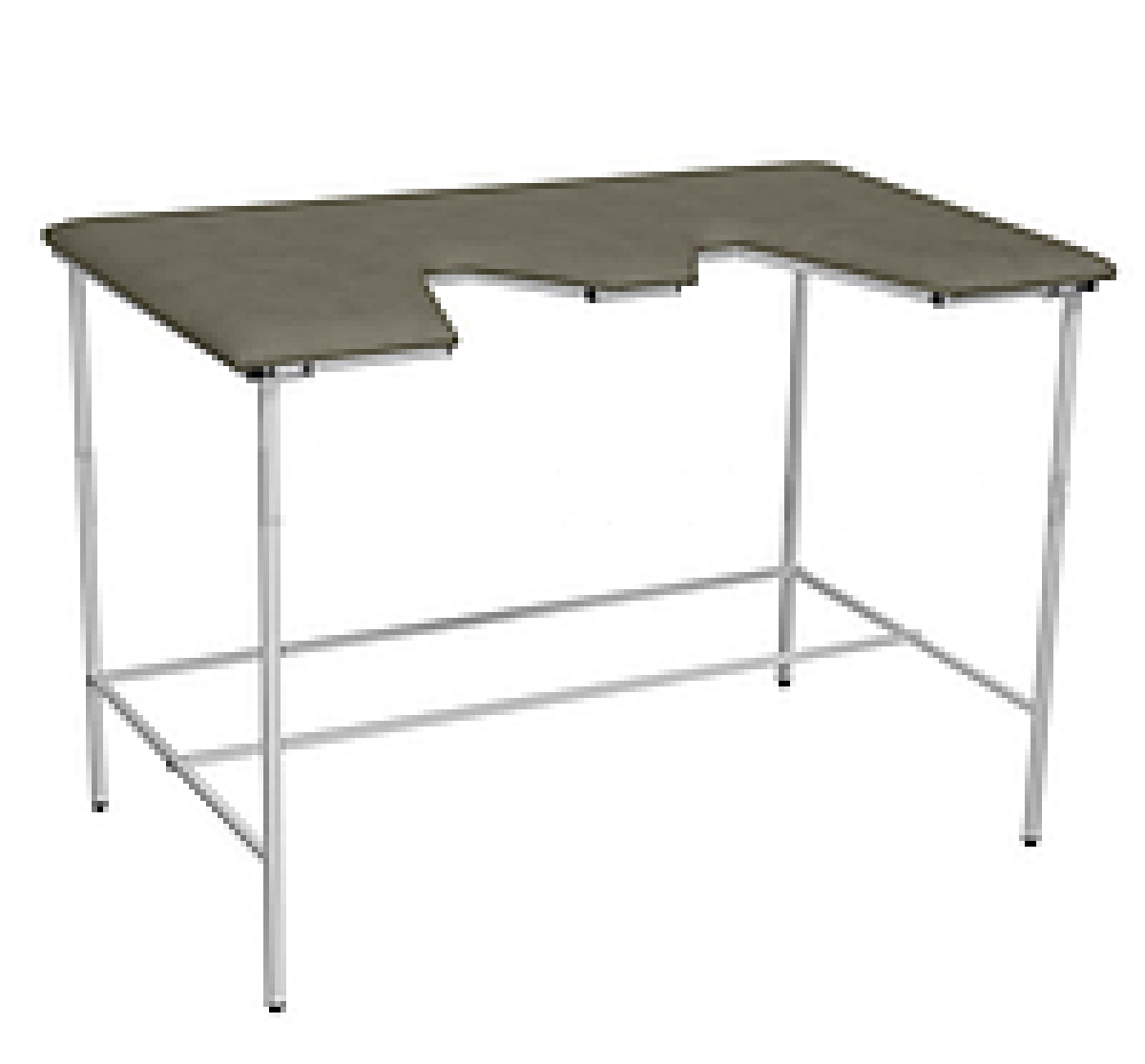 Столешница фигурной формы имеет поддерживающий каркас из стальной трубы, обита слоем пенополиуретана и искуственной кожей.