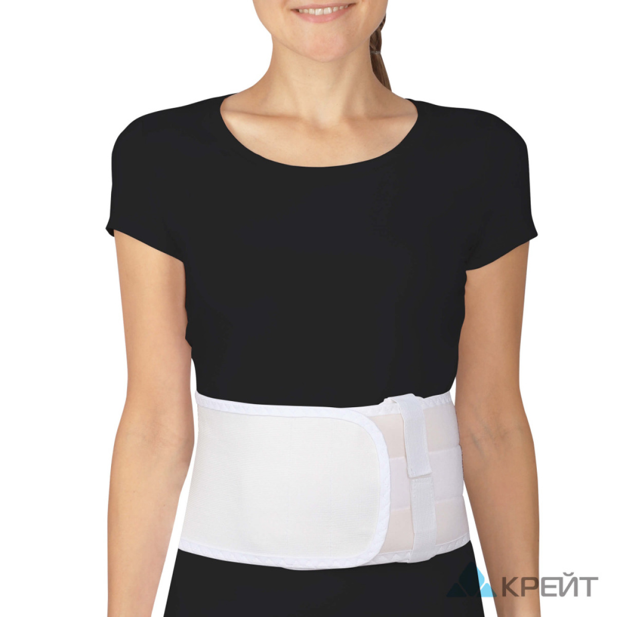Обернуть бандаж вокруг тела и зафиксировать спереди с помощью застежки Velcro