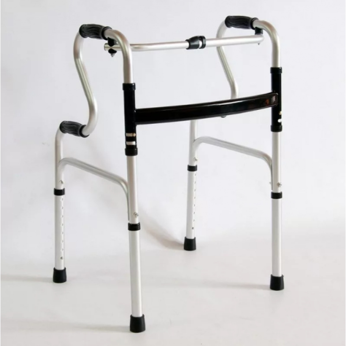 Опорные поручни ходунков выполнены из анодированного алюминия и не подвергаются коррозии, соединяющая рама — из стали с полимерным покрытием. Ходунки легко складываются и не занимают много места, имеют 8 положений регулировки высоты с шагом в 2,5 см. Мягкие накладки на поручнях ходунков не дают рукам скользить; резиновые наконечники, расположенные на опорах, предохраняют от скольжения по твердым поверхностям.