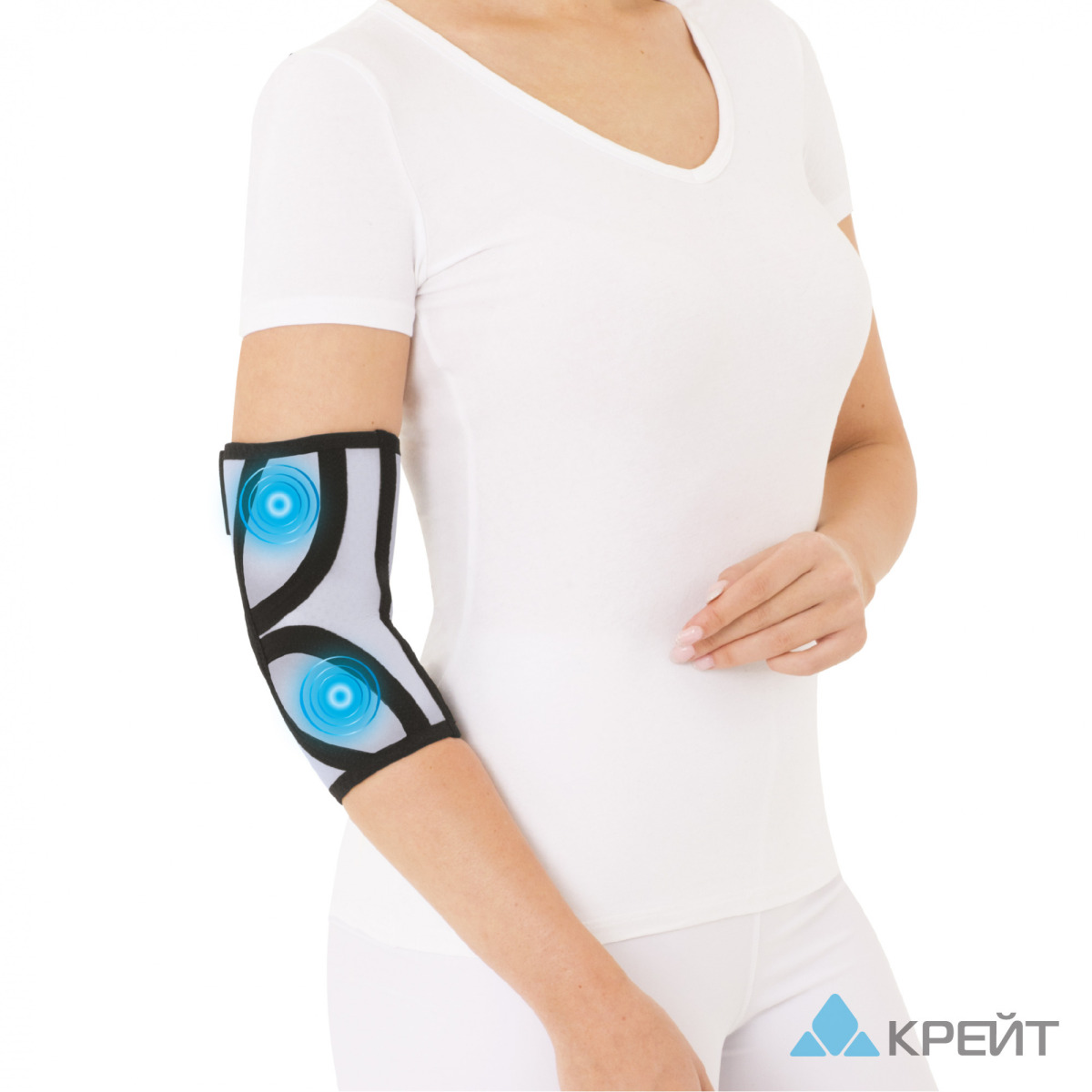 Бандаж для локтевого сустава с аппликаторами биомагнитными медицинскими «Крейт» предназначен для оказания лечебного воздействия постоянным магнитным полем на области локтевого сустава. Применяется в виде самостоятельного безлекарственного метода терапии в амбулаторных или домашних условиях, а также в сочетании с другими медикаментозными и физическими методами лечения. Совместно с магнитотерапией бандаж обладает стабилизирующим, компрессионным, согревающим и микромассажным эффектом.