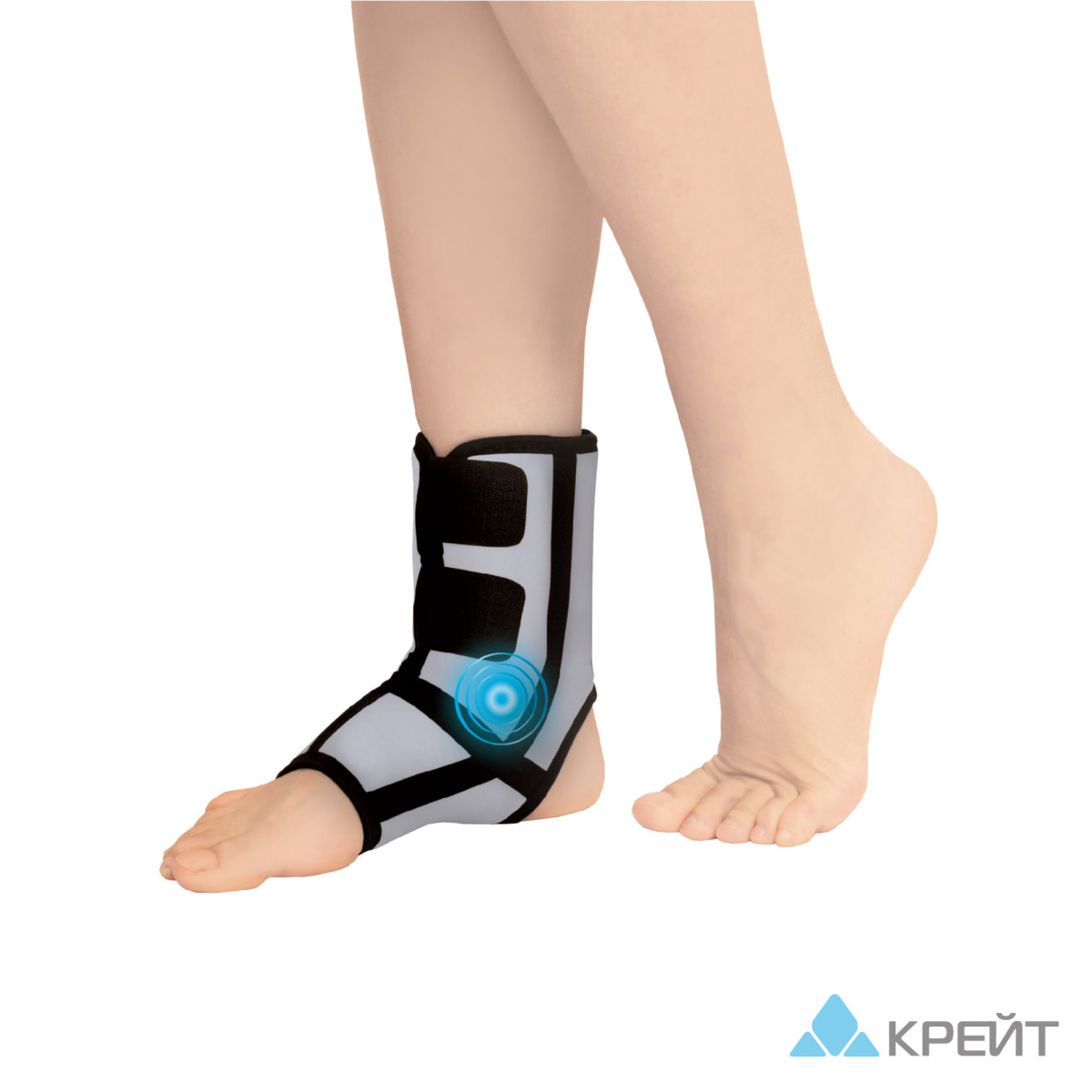 Бандаж для голеностопного сустава с аппликатором биомагнитным медицинским «Крейт» предназначен для оказания лечебного воздействия постоянным магнитным полем на область голеностопного сустава. Применяется в виде самостоятельного безлекарственного метода терапии в амбулаторных или домашних условиях, а также в сочетании с другими медикаментозными и физическими методами лечения. Совместно с магнитотерапией бандаж защищает и поддерживает голеностопный сустав, обладает компрессионным, согревающим и микромассажным эффектом.