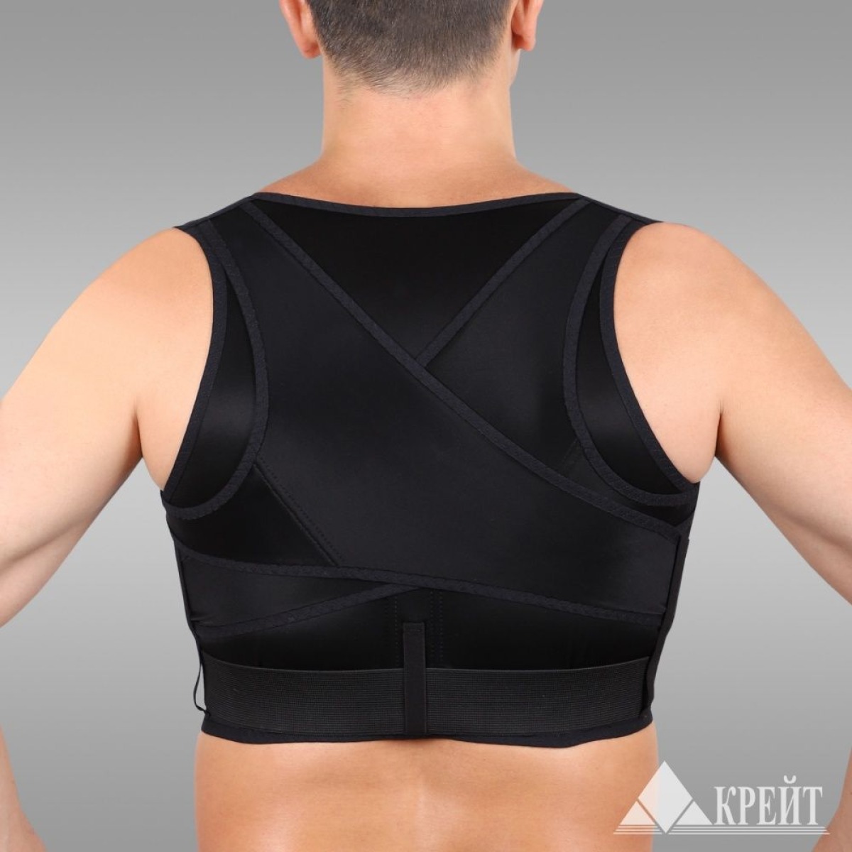 Наденьте реклинатор как жилет. Рёбра с силиконовыми лентами прижмите к телу, бретели – наденьте на плечевые суставы