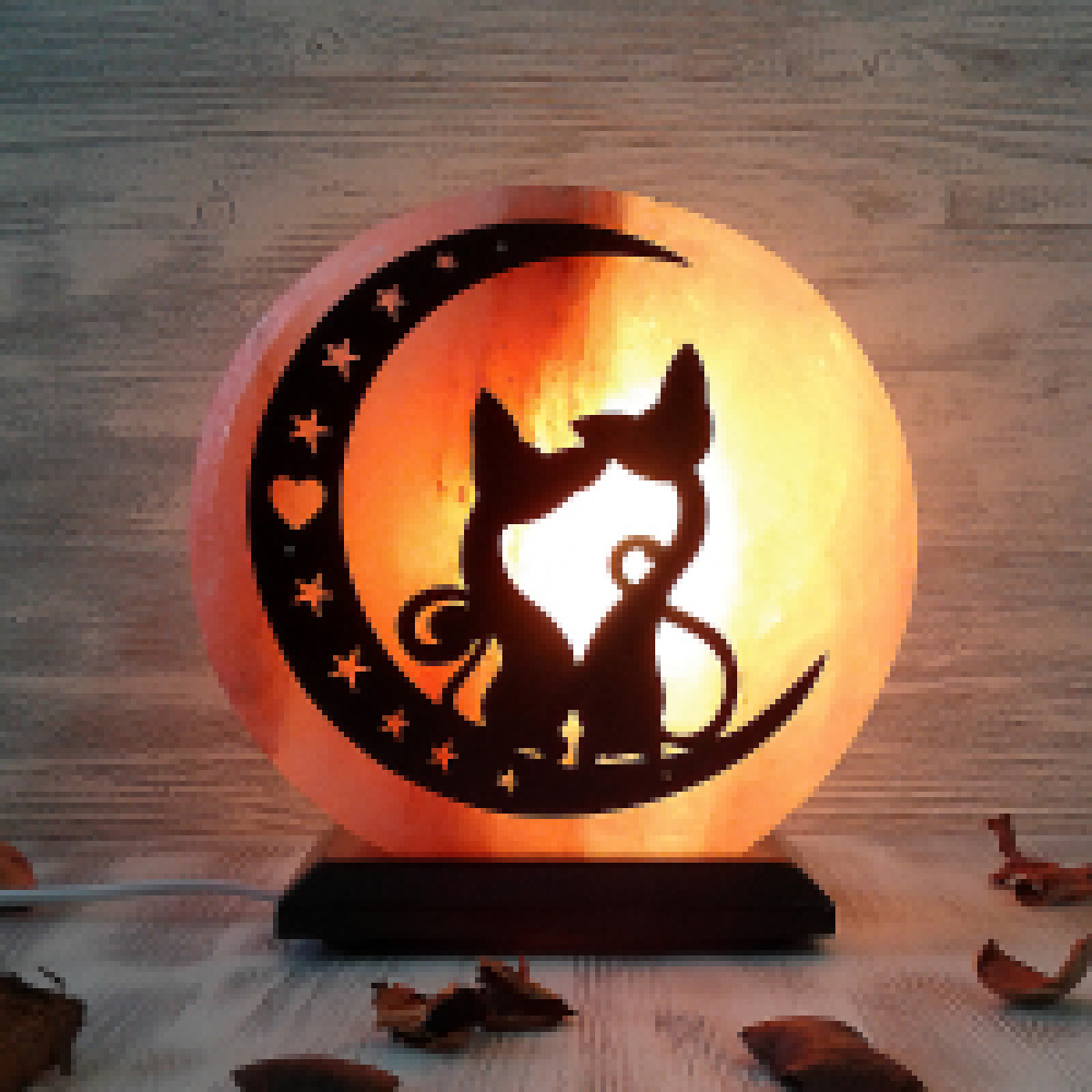 Соляной светильник "Большой с узором" коты на луне 2-3 кг гимал. соль