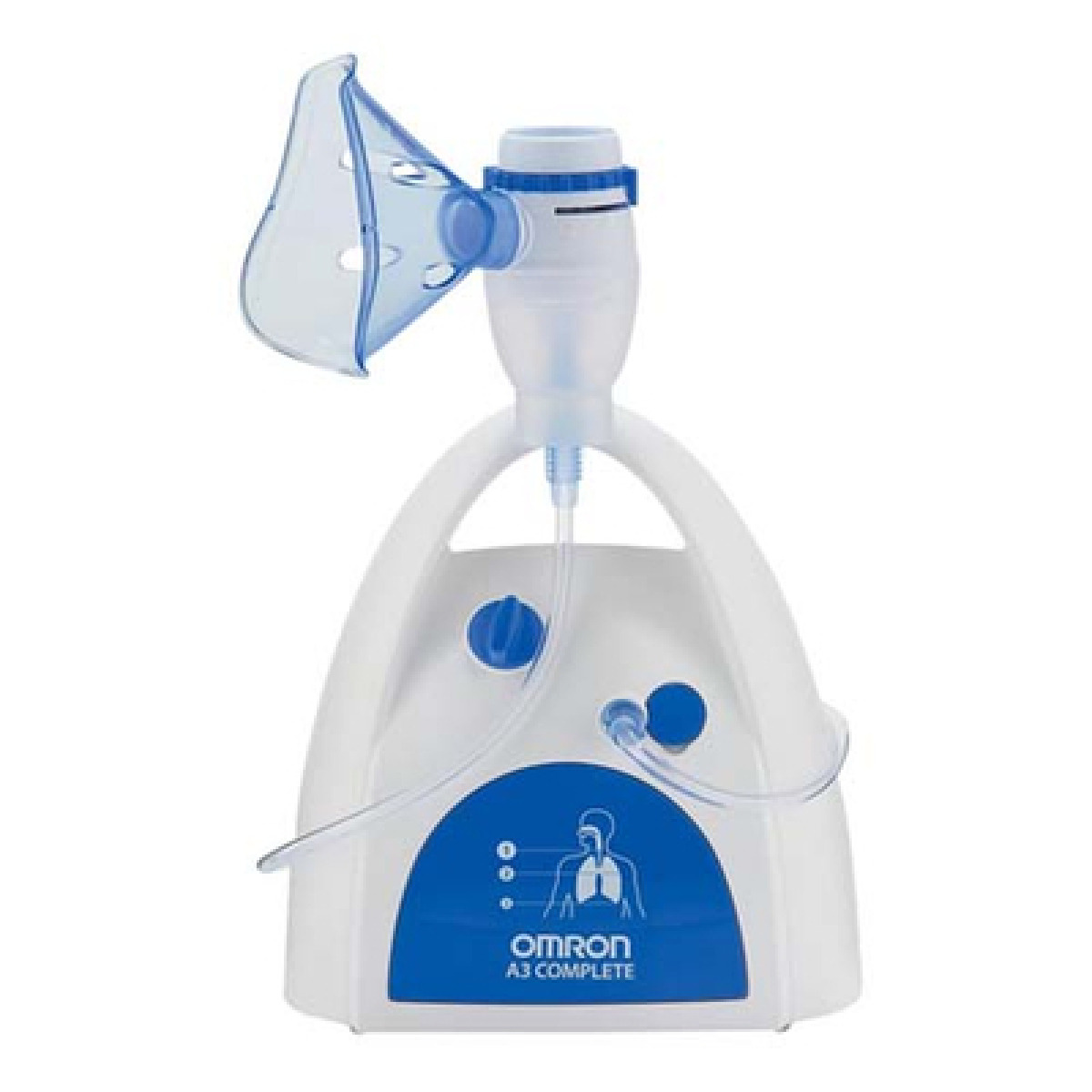 С помощью компрессора лекарство смешивается со сжатым воздухом и преобразовывается в аэрозоль, чтобы лечить заболевания нижних дыхательных путей, необходимо создавать очень мелкие частицы, этим и хорош небулайзер Omron C300 Complete, так как может создавать частицы размером около 3 мкм. Помимо этого преимущества есть еще и достоинства комплектации, в которую входят детская и взрослая маски, а также насадка для носа – это позволяет полноценно лечиться от множества заболеваний.