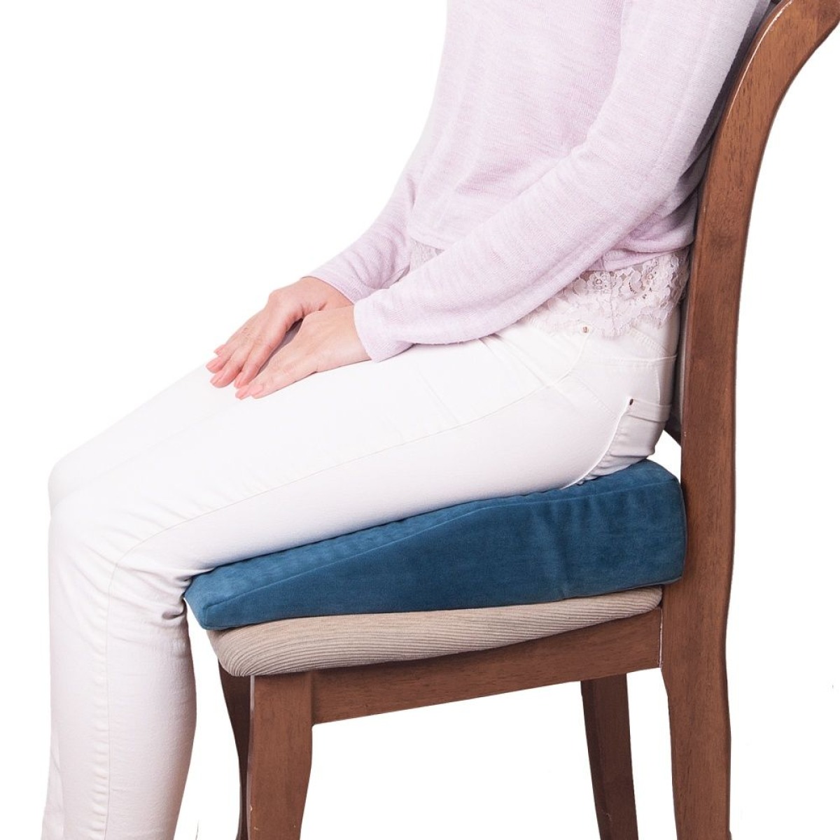 Расположите подушку на сиденье уклоном вперед, чтобы легче было сидеть прямо (чтобы вырез был сзади)