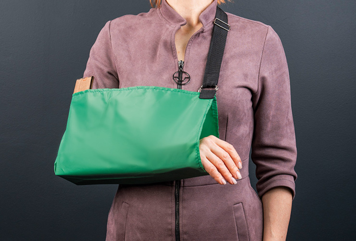Повязка выполнена в виде сумки - «конверта» c плечевым, регулируемым по высоте ремешком.