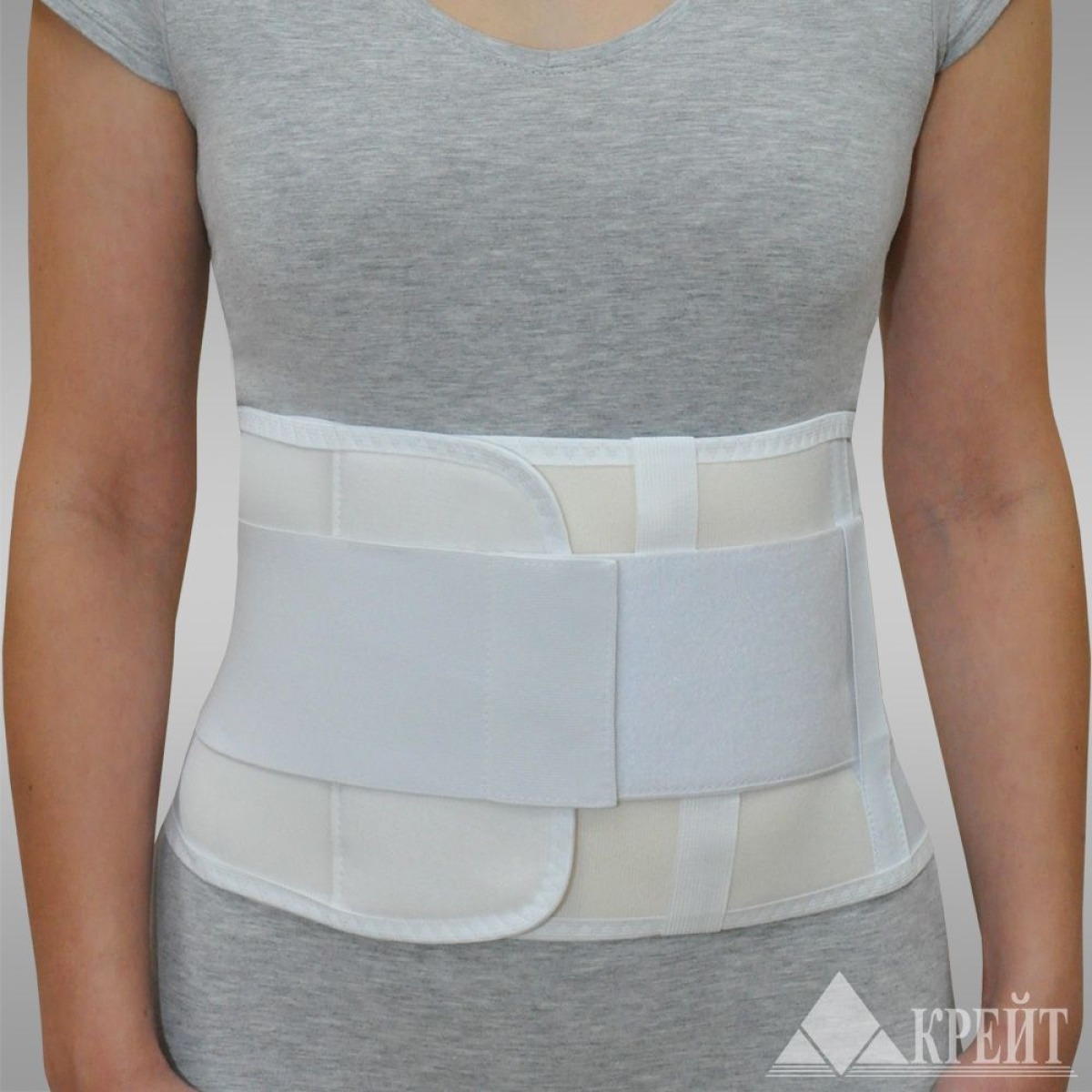 Обернуть бандаж вокруг тела и зафиксировать спереди с помощью застежки Velcro