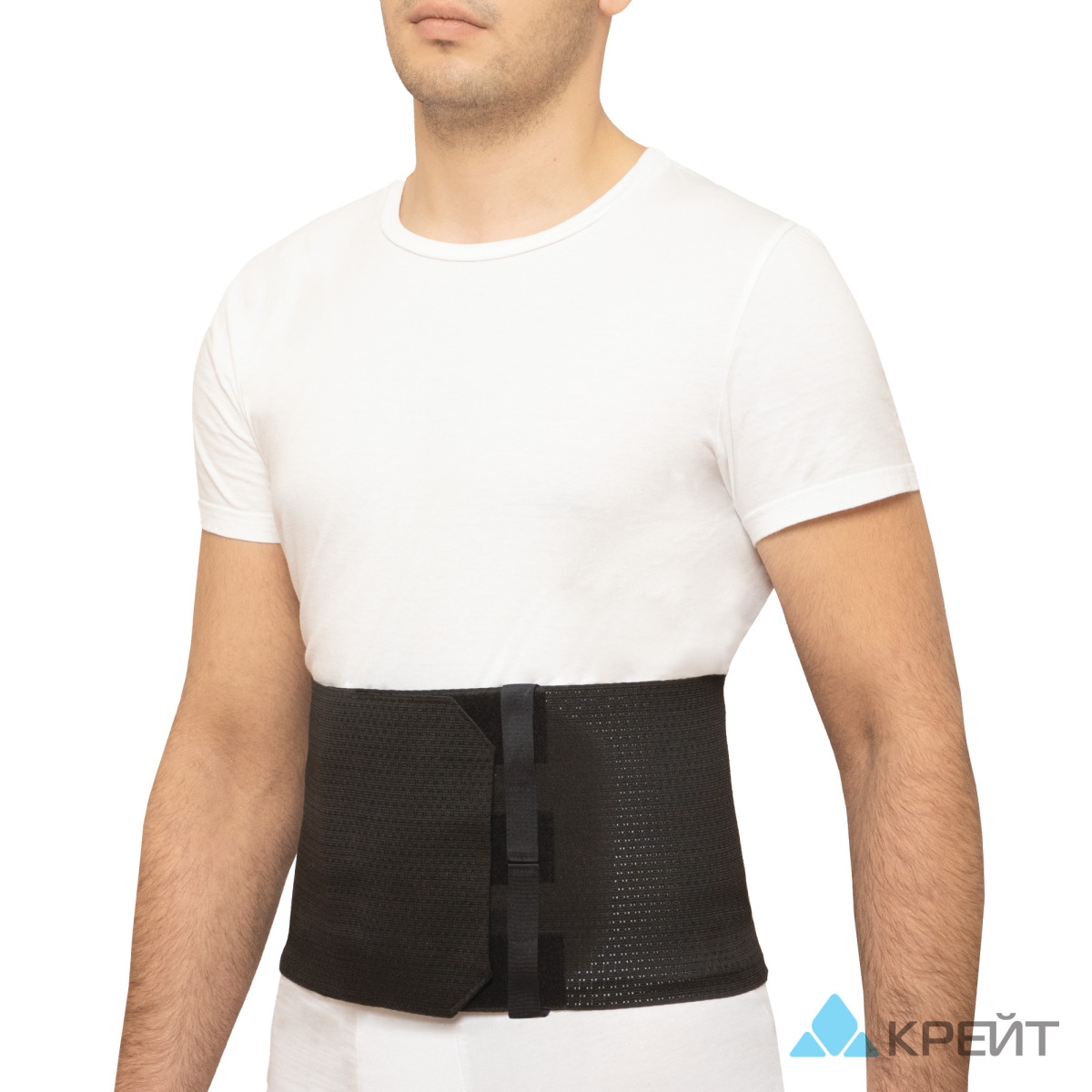 Обернуть бандаж вокруг тела и зафиксировать спереди с помощью застежки Velcro