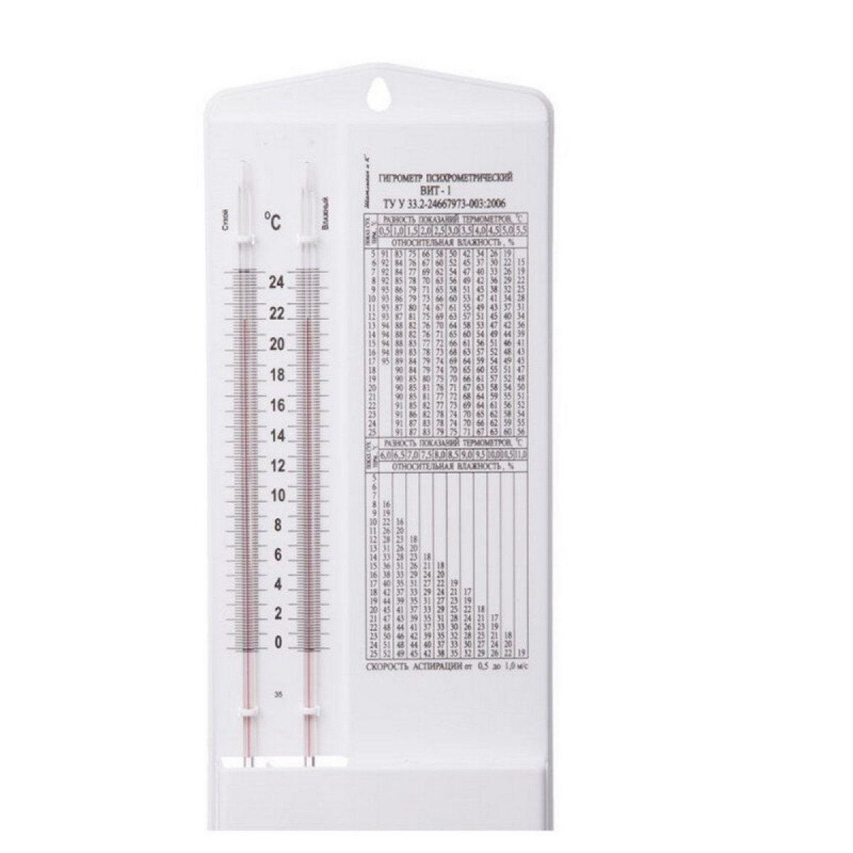 на корпусе гигрометров размещена пластина с психрометрической таблицей, рассчитанной для скорости аспирации от 0.5 до 1.0 м/с.